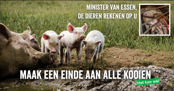 Stuur de nieuwe landbouwminister Van Essen een actiekaart en roep hem op om zo snel mogelijk werk te maken van een dierwaardige veehouderij. Dit betekent alle dieren naar buiten en een einde aan het gebruik van kooien.